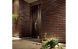 レンガ調タイルで高級感のある玄関まわりに。<LIXIL>